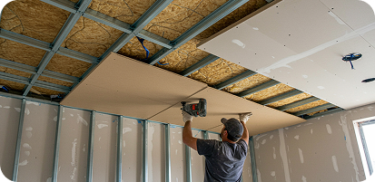 Montaje de tabiques, trasdosados y techos de pladur para redistribución, aislamiento acústico/térmico y soluciones técnicas (iluminación, registros, etc.).